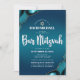 QR Code Bar Mitzvah Turquoise Ombre Agate Modern Invitation