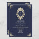 QR Code Baroque Navy Blue Wedding Invitation