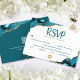 Be proud, rejoice and celebrate this milestone of your favorite Bat Mitzvah with this cool, unique, modern, personalized RSVP insert card for your event! Dark teal script typography overlays a simple, clean white background with turquoise blue agate rocks accented with faux gold veins. On the back, your personal qr code to RSVP online and/or get additional information about the event. Personalize the custom text with the “reply by” date, entrée choice options and your url. This RSVP can also be digitally downloaded. Guaranteed to add stylish fun to her special occasion!