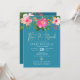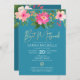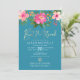 QR Code Bat Mitzvah Turquoise Floral Gold Script Invitation