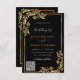 Custom Fonts and Colors - Design Your Own Personalized Wedding Invitation Example with Golden Floral Frame Modern Black and Gold Wedding Invitations Template with QR Code - by MIGNED - Create Your Unique Wedding Invite - Add Your QR Code / Text / Name / Information / more - Resize and move elements with Customization tool. Choose font / size / colors ! Transferable ! Congratulations to the Newlyweds :)