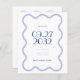 This wedding save the date card is feature a wavy border. It uses calm colors like lavender inspired by lavender fields. The fun and stylish fonts add a touch of elegance, and word at the center are highlighted in bright blue for a fun pop of color and uses a bigger font size. Furthermore, photo and qr code at the back can be personalized.