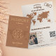 Modern Boho World Map Invitation Wedding Destination, like passport, with your monogram. Add your QR Code. Burnt Orange terracotta background color