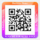 Personalize this sticker with your QR Code (in any color) and Business Name, website and number code in white with orange and purple geometric border.