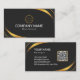 Personalized modern black and gold business card design features your business logo and custom QR code on the back. Add your name, company name/title, logo (photo or other graphic) and contact information. You can customize the text size, font and color to suit your own personal preference. Input a URL address to create a scannable QR code linked to your website, social media profiles, or any other platform.