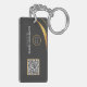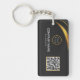 Personalized modern black and gold keychain design features your business logo and custom QR code. Add your company name/title and logo (photo or other graphic). You can customize the text size, font and color to suit your own personal preference. Input a URL address to create a scannable QR code linked to your website, social media profiles, or any other platform.