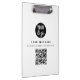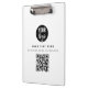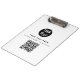 A modern minimalist personalized business clipboard with business logo and QR code. Personalize with your logo, QR code and details to create your own unique elegant black and white business clipboard.
