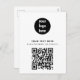 A modern minimalist personalized business postcard with business logo and QR code. Personalize with your logo, QR code and details to create your own unique elegant black and white business postcard. Customize even further with a custom color background or font.
