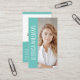 Make a memorable first impression with this modern and dynamic business card design. The bold vertical strip of vibrant teal on the front elegantly frames your name, while a striking photo of you captures attention and adds a personal touch. The reverse side features your company logo, name, title, and all essential contact details, including a QR code, presented in a clean and organized layout, ensuring both professionalism and approachability.