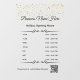 Modern QR code business name and business hours for the holidays. Gold glitter (in the graphic only) with black script and typography that you can easily personalize.