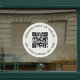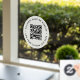 A simple custom gray QR code vinyl window cling decal template in a modern minimalist style which can be easily updated with your QR code, business name or website and custom text, eg. scan me to...
