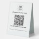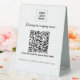 Simple, elegant, and minimalist design. This tabletop is perfect to promote your business, you can customize the logo, the QR code, and the business name, you also have two customizable texts one for the QR code message, and another one to add additional information.