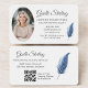 Promote your notary services with this notary QR code photo navy blue business card. The clean, professional layout includes space for your photo and a convenient QR code, allowing clients to quickly access contact details, scheduling, or online information. The navy blue color adds a trustworthy, polished look, making this print-ready business card ideal for notary publics seeking a modern design with strong branding and digital convenience.
