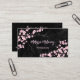QR Code | Cherry Blossoms Pink Black Marble Business Card