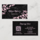 Pretty pink cherry blossoms on a black marble background and your name in an elegant handwritten script. A scannable qr code at the back. Perfect for female entrepreneurs, make up artists, beauty salon, spa, landscaping, babysitters, doula...