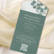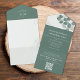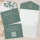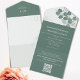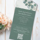 This design features a QR code elegant rsvp online all in one incitation with a classic eucalyptus green template, a guest response reply website web, reception on a budget simple, green greenery foliage leaves leaf, stylish trendy calligraphy script, classic traditional formal botanical, traditional classy modern minimal, guest details information info, a hand-drawn original artwork