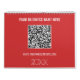 Custom Colors and Font - Calendars with Your QR Code Scan Info Custom Text Colors Personalized Promotional Business or Personal Modern Calendar Gift - Add Your QR Code - Image or Logo - photo / Text - Company - Name or other info / message - Resize and Move or Remove / Add Elements - Image / Text with Customization Tool. Choose / Add Your Favorite Background and Text Colors / Font / Size ! Please see my others projects / designs. You can also transfer this designs to more than 1000 Zazzle products. Good Luck - Be Happy :)