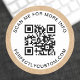 Round, white stickers with your QR code and custom text and a printed Kraft paper look border. Change fonts and font colors, move and resize elements with the design tool. Follow us on Facebook: @businessstationery for more products, news, sales and more.