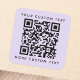 Light lavender purple, square stickers with your QR code and custom text, one line at the top and one at the bottom. Change fonts and colors, move and resize elements with the design tool. NOTE! YOU NEED TO REPLACE THE QR CODE TEMPLATE WITH YOUR OWN QR CODE! Follow us on Facebook: @businessstationery or Instagram: @business.perfectlycustom for more products, news, sales and more.