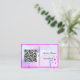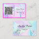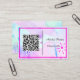 This is a UK/European-sized business card and is available in more sizes. Change the QR code, name, and job title to your specification. Designed with an artistic mind, it has a pink, purple watercolour background, with a QR code, name, and job title. The back of the card has the name and title on it.