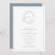 QR Code Dusty Blue Leafy Crest Monogram Wedding Invitation