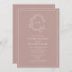 QR Code Dusty Rose Leafy Crest Monogram Wedding Invitation