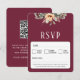 Wedding RSVP response card with watercolor apricot flowers and garden foliage. A simple yet elegant contemporary botanical design inspired by boho vintage style. Includes space for QR code and wedding website address.