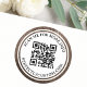 QR code elegant text brown wood double border Classic Round Sticker
