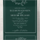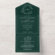 We're loving this trendy, modern emerald green All-in-one Simple, elegant, and oh-so-pretty, it features a hand drawn leafy wreath encircling a modern wedding monogram. It is personalized in elegant typography, and accented with hand-lettered calligraphy. Finally, it is trimmed in a delicate frame. QR Code RSVP on back. Part of a matching wedding set. Veiw suite here: