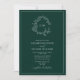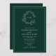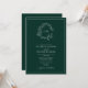 QR Code Emerald Green Leafy Crest Monogram Wedding Invitation