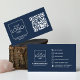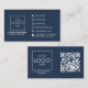 Our QR Code Front and Back Business Logo Professional Business Card features a sleek and minimalist design in a sophisticated navy blue color. These modern business cards are ideal for professionals who want to make a lasting impression. The front of the card prominently displays a QR code, enabling easy access to your website, contact information, or any other relevant data. This is a convenient way to share your details while maintaining a modern and minimalist aesthetic. On the back of the card, your business logo takes center stage, reinforcing your brand identity and ensuring instant recognition. These business cards are fully customizable, allowing you to use a QR code generator to link to your preferred information or website. With their distinctive design and practical QR code technology, these business cards are perfect for professionals who wish to convey both style and efficiency.