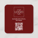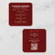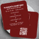 Designed for the contemporary professional, this square business card features a dark red background for a bold and distinctive look. The inclusion of a QR code allows for seamless digital connectivity, enabling clients and contacts to quickly access your information or website with a simple scan.