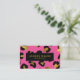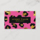 Modern, girly animalier networking card featuring digital image of lepard print in fuchsia, black and glitter gold . Black stripe overlay. Great for beauty, fashion , entertainment and event professionals.