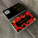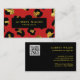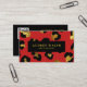 Modern, girly animalier networking card featuring digital image of lepard print in red, black and glitter gold . Black stripe overlay. Great for beauty, fashion , entertainment and event professionals.