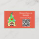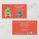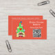 QR Code Gnome Hometown Bakery Business Card. Funny baker gnome with a macaron hat and holding a piece of cake. A fun bakery business card. Personalize this template with your information. Customize it further for more changes. Four social media symbols are on the back of the card. When customizing it, any of the images can be taken off and moved around.
