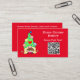 QR Code Gnome Hometown Bakery Business Card. Funny baker gnome with a macaron hat and holding a piece of cake. A fun bakery business card. Personalize this template with your information. Customize it further for more changes. Four social media symbols are on the back of the card. When customizing it, any of the images can be taken off and moved around.
