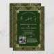 QR Code Gold Dark Green Art Deco Wedding Invitation