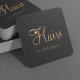 Elegant chic glamorous hairstylist promotional square business card with scanning QR code and trendy chic typography in black and faux metallic copper gold. Suitable for hairstyle salon, beauty salon, hairdresser, professional hairstylist. +++++++++++++++++++++ Perfect choice for an elegant glam stylish sophisticated professional look. ++++++++++++++ Easy to personalize with your business, name, title, and contact details on both sides!
