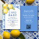 QR Code Italian Blue Tiles Lemon Baby Shower Invitation