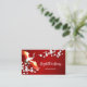 This Japan style business card features a crane and white cherry blossoms on a shimmering red background with custom name and profession in an elegant stylish script.