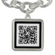 A modern minimalist personalized digital qr code charm bracelet with black background that can be customized to your QR code. Great gift for a message of love, memorial jewelry, wedding memories, QR code Jewelry, simply scan and view.
