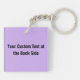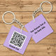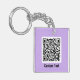 Custom QR code keychain. Custom background color. Custom text on both sides.