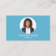 Professional Elegant and Modern Minimalist Photo Business Card in bright sky BLUE that allows you to include head shot photo or picture, Name, Job Title on the front,and logo or QR code contact and other details on the back. The card has social icons (instagram, facebook) and space for social account.