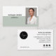 Enhance your professional image with this modern, minimalist white and SAGE GREEN business card, designed for a sleek and sophisticated look. The front features space for your best portrait photo, name, and job title, while the back allows you to showcase your logo, QR code, contact details, and social media handles (Instagram, Facebook).