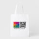 Create Your Own Custom Upload Add Business Company Corporate Logo Name Text Here Your Website Url Address QR Code Best Modern Elegant Promotional Items Accessories / Bags & Wallets / Totes & Shopping Bags / Reusable Grocery Bags / Double Sided Design Print White Grocery Bag.