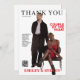 A bold and minimalist thank you card featuring your custom couple photo as the background with a soft transparent overlay. Designed with clean black and red text for a modern, editorial feel. Includes space for a QR code linking to your photo gallery or message. A stylish and personal way to express your gratitude.