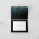 Modern Abstract RSVP - Bold edgy teal sparkly garland cascades down the page, in handwritten calligraphy is "let us know" - couple's initials at the top - the rest of the text is simple and clean - all on a black background. Elegant wedding stationery.