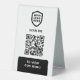 A simple custom black business table top double sided tent template in a modern minimalist style which can be easily updated with your company logo, QR code and custom text.
