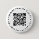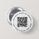 A simple custom white QR code round button pin template in a modern minimalist style which can be easily updated with your QR code, business name or website and custom text, eg. scan me to... #QRcode #button #business