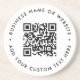 A simple custom white QR code coaster template in a modern minimalist style which can be easily updated with your QR code, business name or website and custom text, eg. scan me to... #QRcode #coaster #business